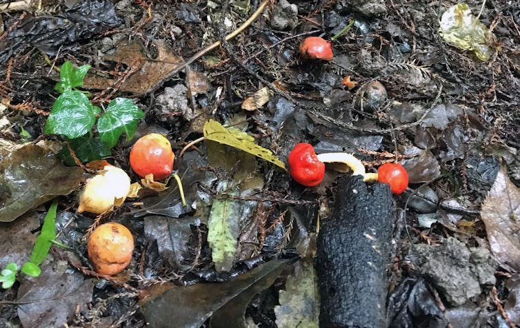 In our research, we asked whether New Zealand really has more brightly coloured truffle-like fungi or whether we are simply paying more attention to them and under-appreciating the dull ones. And we investigated if there was a link between their distribution and fruit-eating birds.