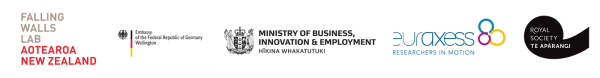 Falling Walls Lab Aotearoa New Zealand is hosted by Royal Society Te Apārangi with support from the German Embassy in Wellington, the Ministry of Business, Innovation and Employment and EURAXESS Australia & New Zealand.