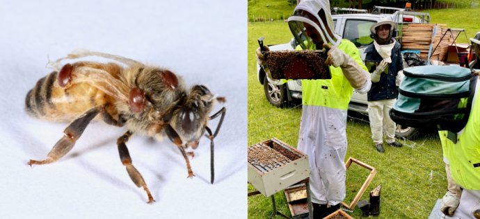 According to Manaaki Whenua Landcare Research, one in every three mouthfuls of our food relies on animal pollination, primarily from insects and birds. Social insect specialist, Professor Phil Lester (Te Herenga Waka—Victoria University of Wellington), is an expert in insect boom-and-bust dynamics. He and his team use applied entomology for control of invasive ants and wasps. For the past 5 years, they have been developing and testing an innovative new treatment to help honeybees (Apis mellifera).
