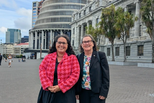 Dr Joanna Hikaka and Professor Ngaire Kerse in front of the Beehive